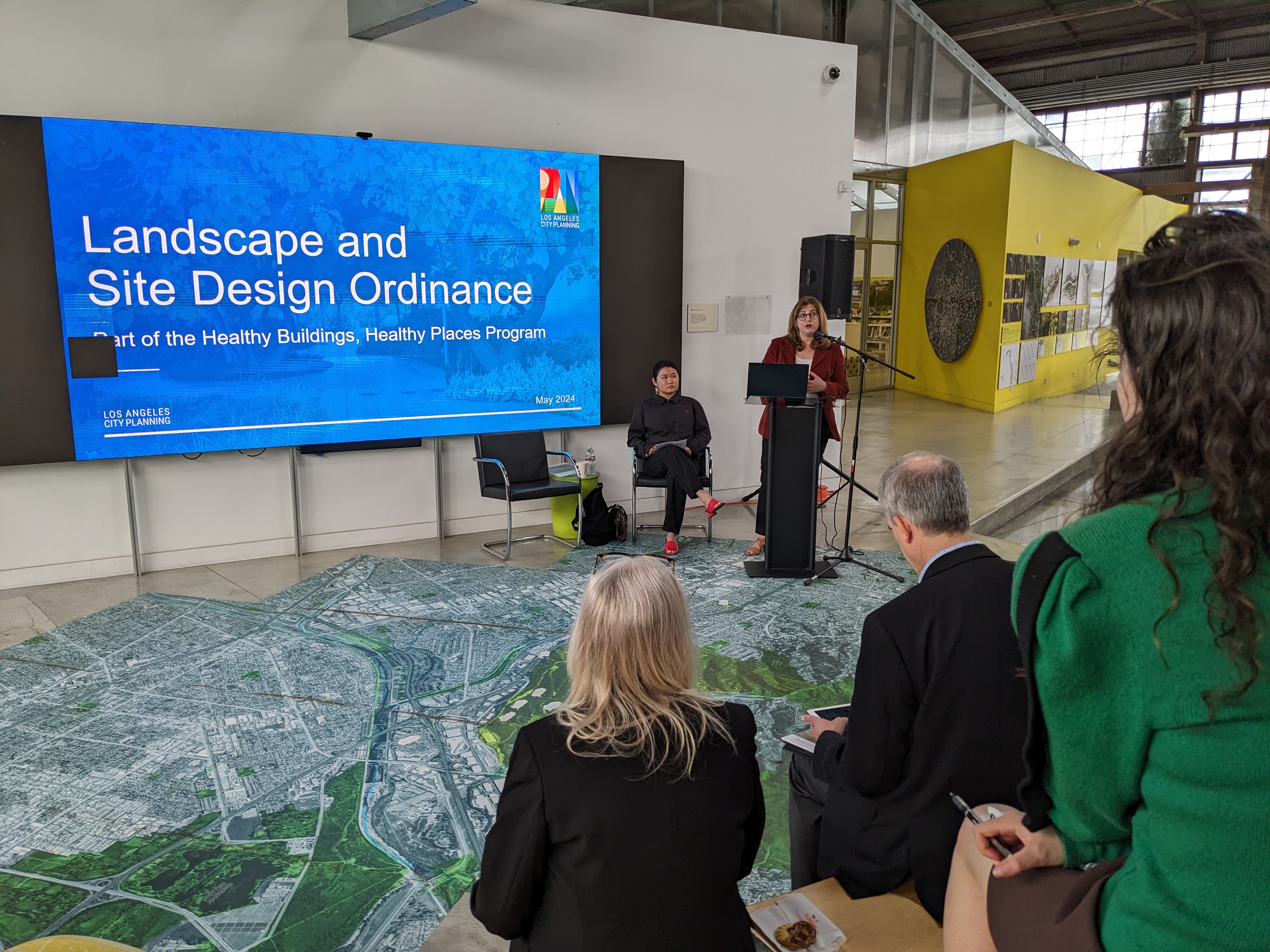 Late last month, we organized a roundtable presentation with AIA|LA, ASLA, and LACP Urban Design Studio at Studio-MLA to discuss the recently proposed Landscape and Site Design Ordinance. The draft ordinance reflects the culmination 3+ years of working with LACP on advancing their Healthy Buildings, Healthy Places initiative.