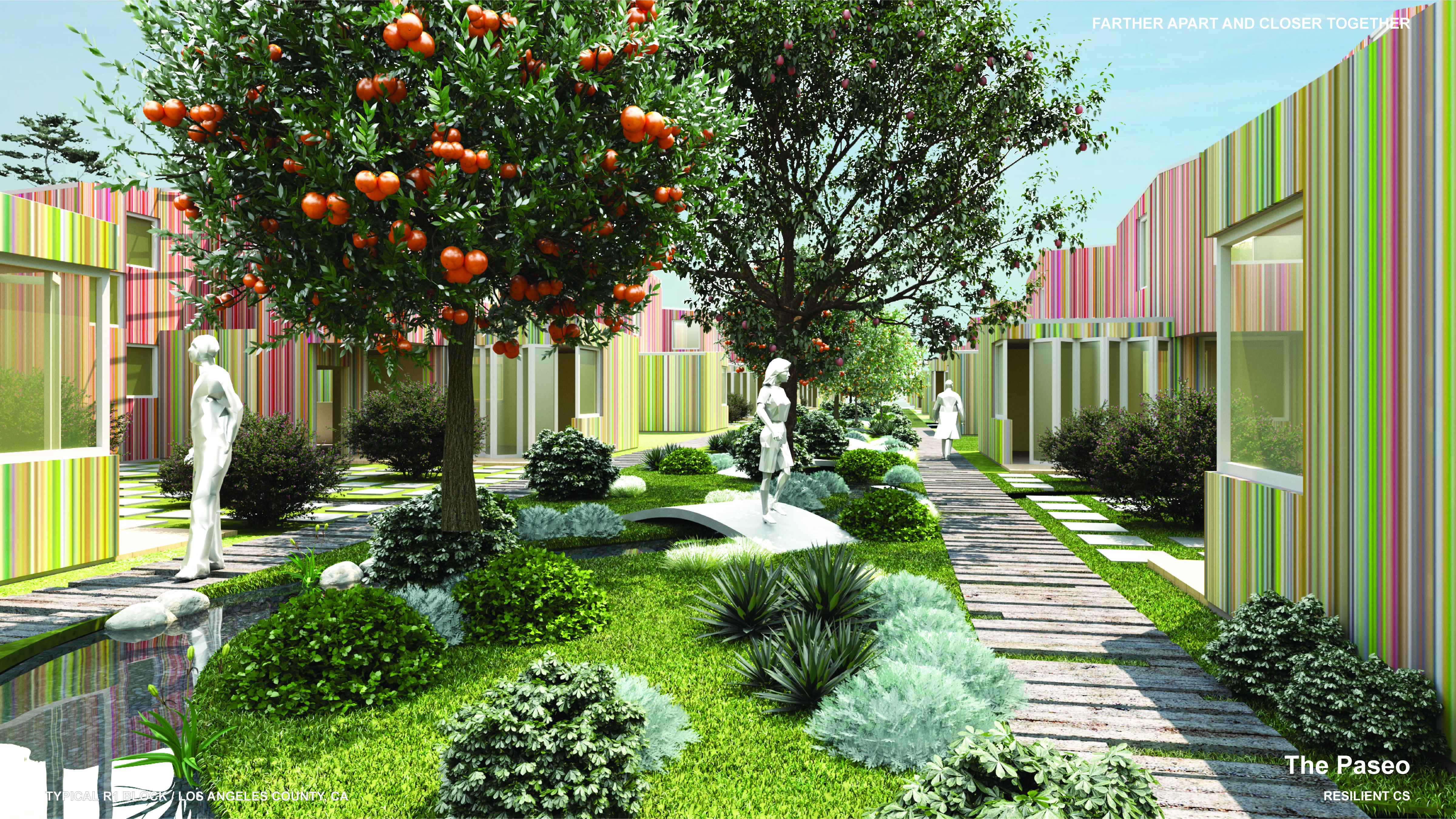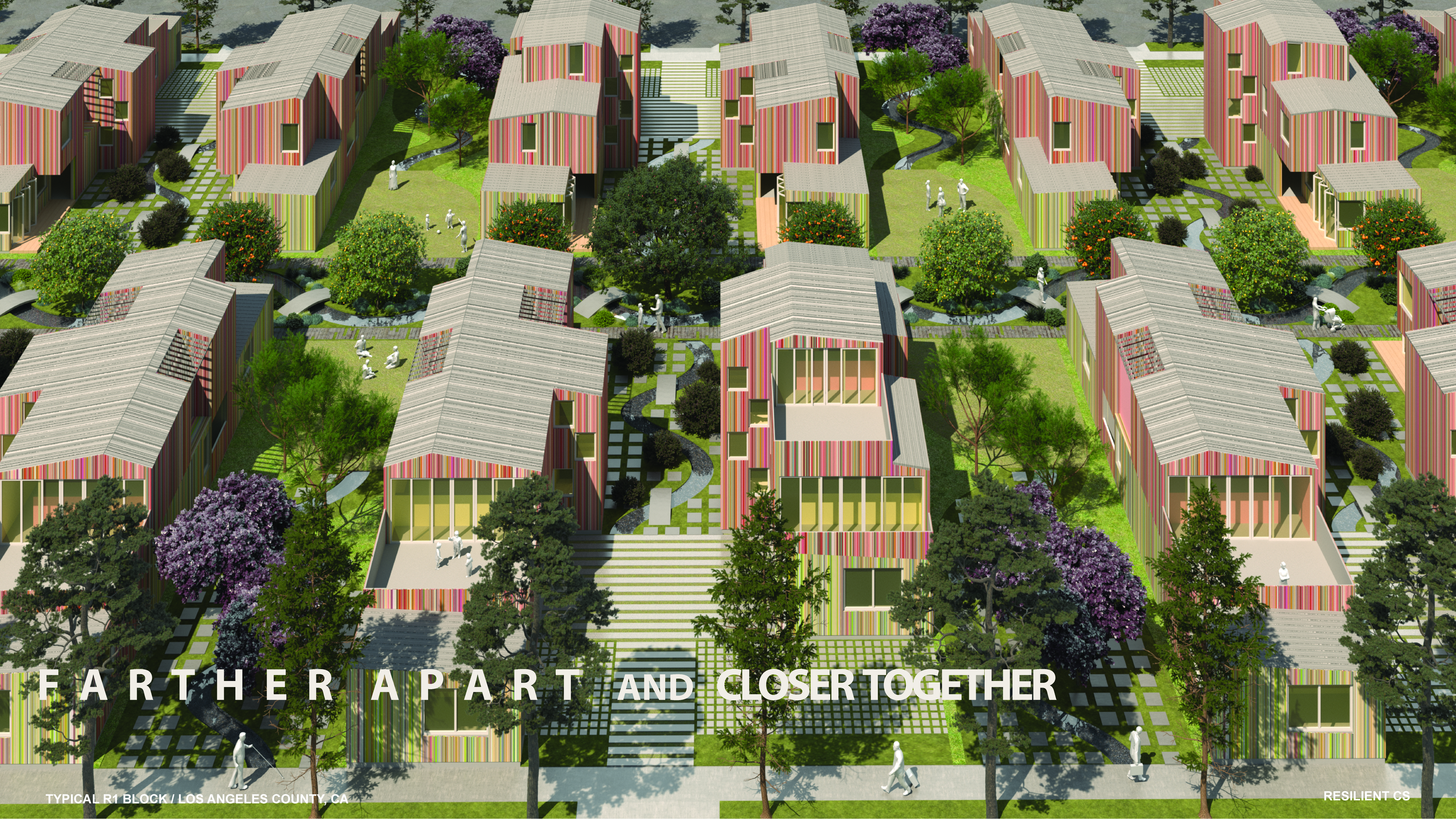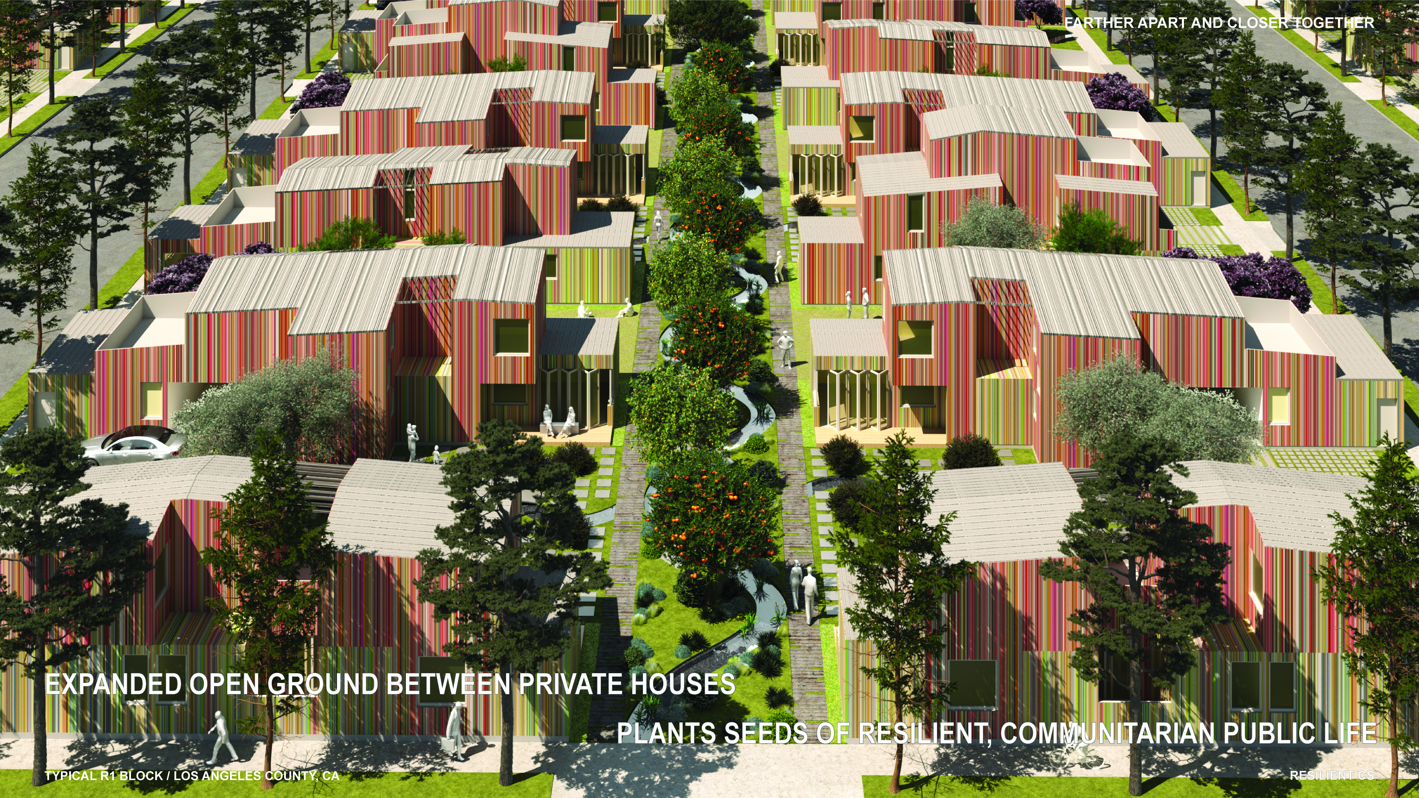 “The design integrates landscape architecture and shared private realms into a cohesive, publicly oriented urban vision of a healthier, more balanced way of living together in the city, while promoting the image and substance of today’s diverse single-family zones.”