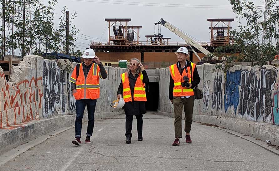+ Second, our excavation work exposed the Zanja Madre, LA’s original water distribution system made of brick, that sat below one of the canopy columns. A transfer beam was designed to cantilever over the Zanja Madre and support that canopy column. We left this piece of the Zanja Madre exposed to the public as part of the History of Water Exhibit.